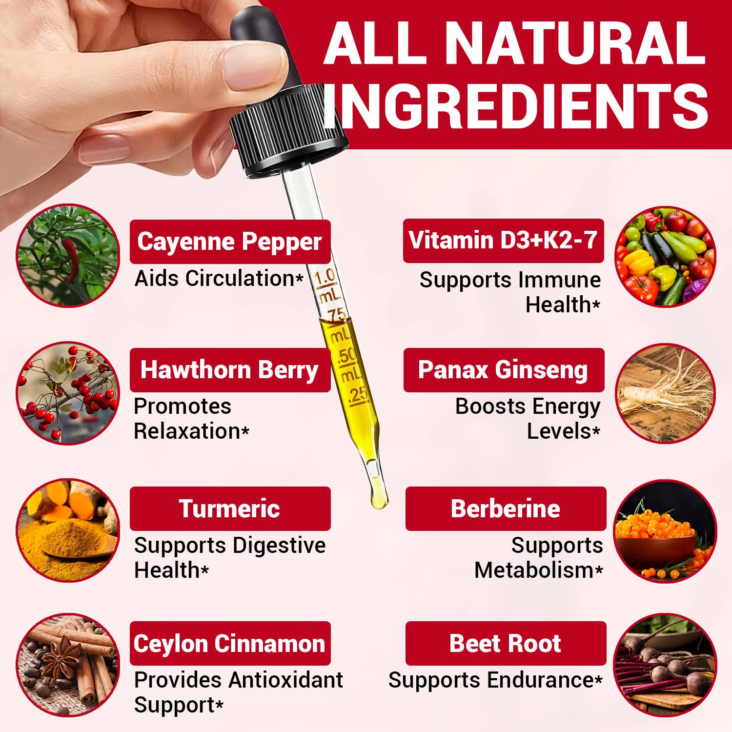 * Supports General Vitality: Our unique liquid supplement is formulated to support overall vitality and contribute to a balanced body. Ingredients like Cayenne Pepper and Hawthorn are traditionally recognized in wellness practices.